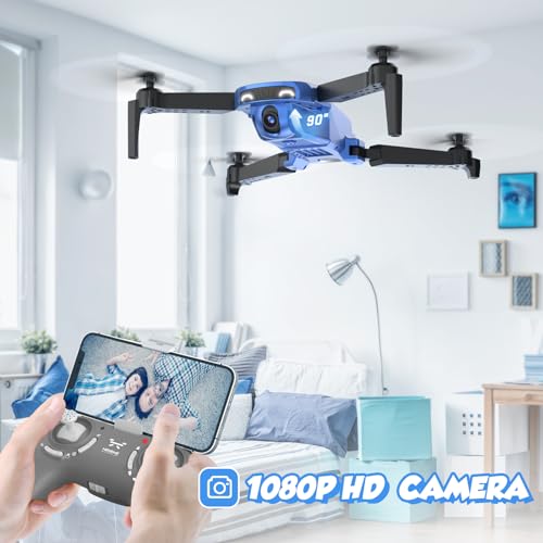 NEHEME Drones for Kids with Camera – Remote Control Helicopter Toys Gifts for Boys Girls, 1080P HD FPV RC Quadcopter for Adults, One Key Start/Land, Altitude Hold, Gravity Control, 2 Batteries, Blue