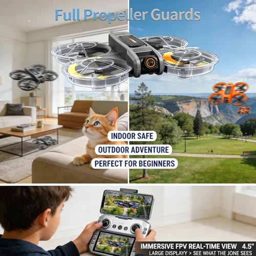 Super Stable & Safe for Total Beginners Take off and land with one button. The Optical Flow Positioning and 6-axis gyroscope ensure rock-solid hovering and easy control. Full 360° propeller guards protect both your drone and surroundings, making it perfect for indoor and outdoor practice without worry.