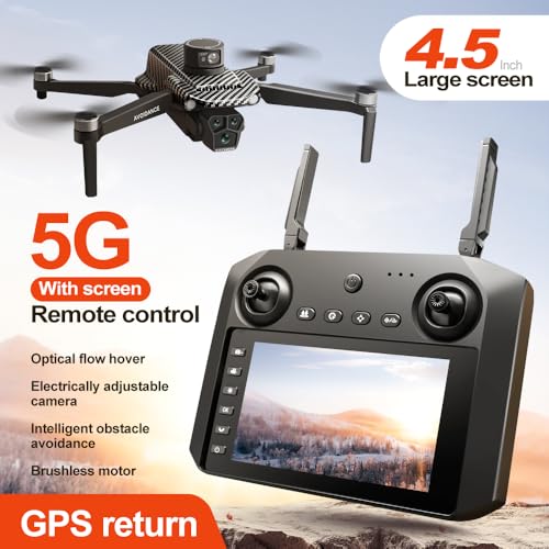 GPS Remote Control Drone, HD Quadcopter with 4K Camera, 7.4V 3000mAh Battery (2 Batteries), 4.5-Inch FPV Screen, 5G Real-Time Transmission, Laser Obstacle Avoidance, Brushless Motor, Optical Flow Positioning, LED Lights, Altitude Hold, Intelligent Hover, One-Button Takeoff, Return on Loss of Control, Low Battery Return, Surround Flight, Waypoint Function, Follow Me, 200g Lightweight Design, Suitable for Beginners and Professionals, Outdoor Aerial Photography Drone