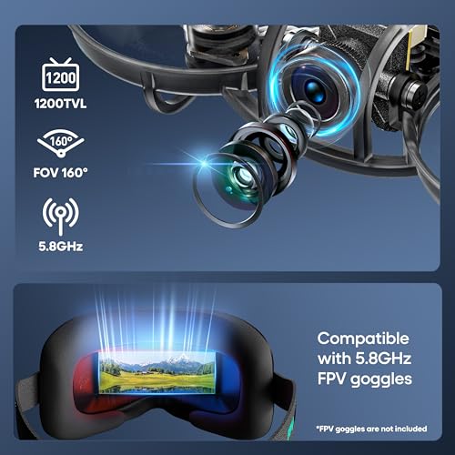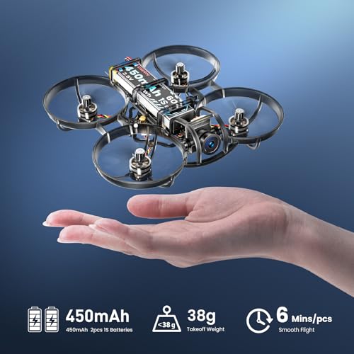 【Multi-Flight Modes for All Skill Levels】Entry-level FPV Pilot-Friendly:Angle Mode and Horizon Mode;Advanced & Pro:Acro Mode (Manual Mode),Anti-Turtle Mode.Equipped with a adjustable camera (0-35°) 1200TVL FOV160°Analog camera, compatible with all standard 5.8GHz FPV goggles,perfectly match your flying style, from relaxed cruising to aggressive racing.