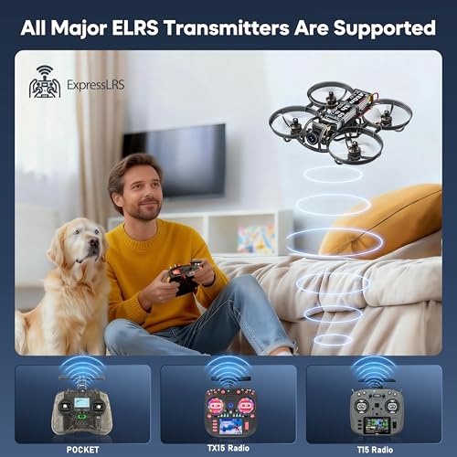 【Wide Support ELRS Transmitters】R8 FPV Drone features a built-in ELRS 2.4G receiver (Ver 3.5.X) for quick binding with mainstream ELRS transmitters (for Radiomaster Pocket/Boxer/TX15,Happymodel,Jumper and more), delivering a stable, ultra-low-latency control experience.