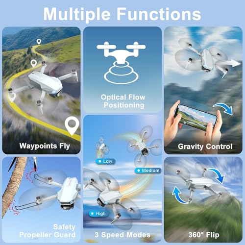 Beginner Friendly with Multiple Functions: You can easily control the foldable drone by remote control or “BLINORY GO” app. It features numerous intelligent functions for easy operation, including optical flow positioning, altitude hold, headless mode, three-speed modes, one-key takeoff/ landing/ emergency stop, 360° flips, trajectory flight. For gesture control, just make a “V” gesture for photos and use a palm gesture for videos. These multiple functions make it extremely beginner-friendly.
