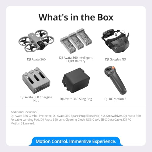 DJI Avata 360 Motion Fly More Combo, 360° Drone With 1-Inch 8K 360° Imaging, 360° Camera Drone With Propeller Guard. Includes Goggles N3 and RC Motion 3 for Intuitive Motion Control 1 year NYC Care Plan and more